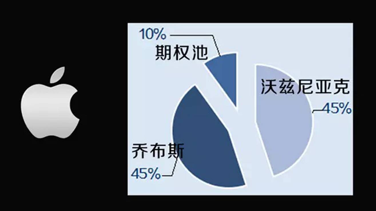 1、苹果:乔布斯和沃兹尼亚克各45%,韦恩10%;