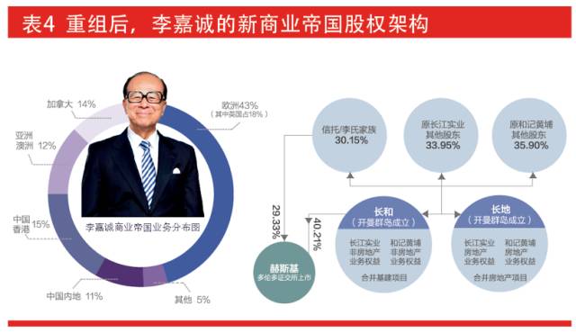 可以说,李嘉诚家族的股权结构图(见表4),可谓真正“全球”财富配置的股权结构,并用公司、信托、基金会等多种财富集合管理形式,是中国式家族财富管理的最高境界。